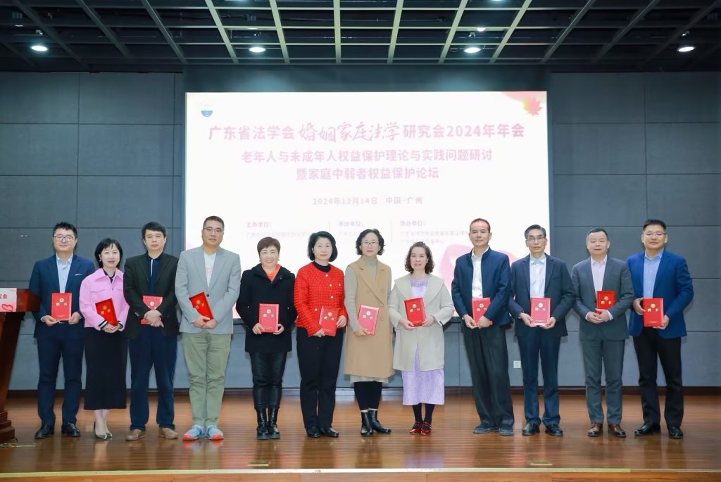 广东省法学会婚姻家庭法学研究会2024年会于12月14日在广东工业大学成功召开。本次年会汇集了全省范围内的婚姻家庭法学专家、学者及法官、检察官、律师等法律实务界代表,共同围绕老年人与未成年人权益保护的理论与实践问题展开了深入探讨。会上,广东工业大学法学院教授郭丽红再次当选为广东省法学会婚姻家庭法学研究会第七届理事会会长,林冰律师当选为副会长。