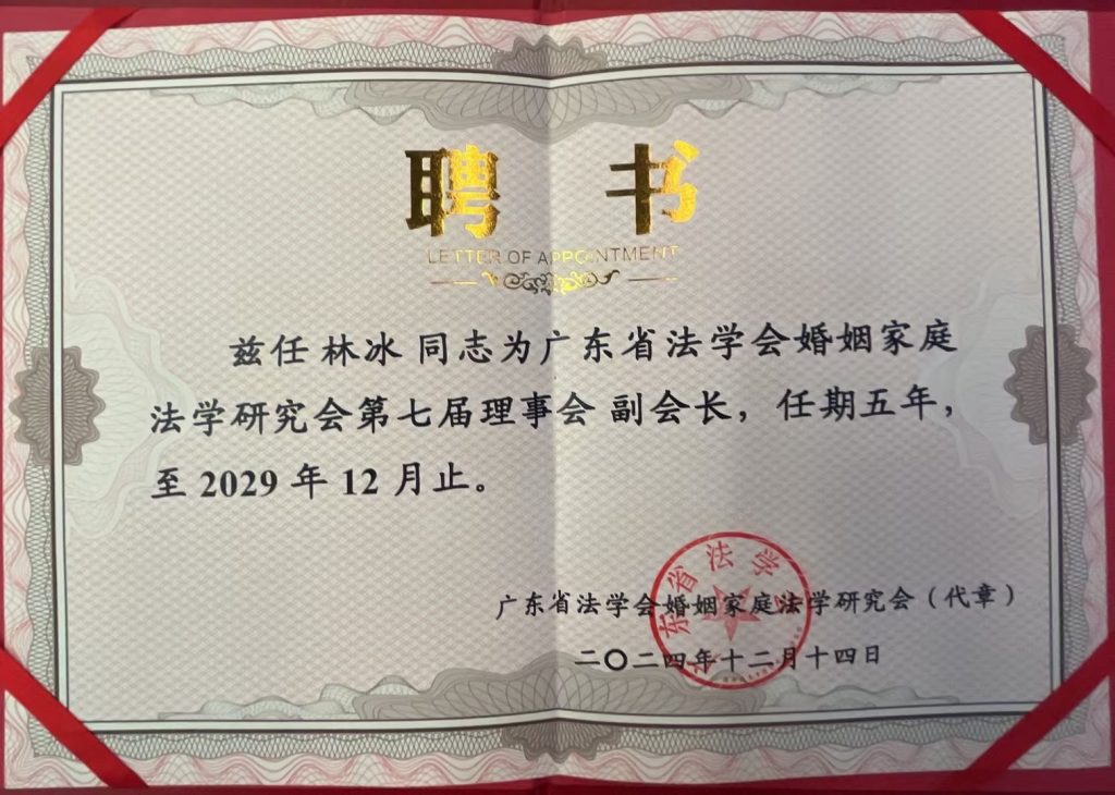 广东圳品律师事务所主任林冰律师执业25年,拥有丰富的民商、刑事及行政法律实务经验,最近十年专注家族财富领域,分别带有多个婚姻家事、遗产继承和健康养老团队,在对传统的家事法律业务和家族财富管理体系进行了深入研究的基础上,特别重视传统文化在家族财富管理与传承中的独特作用,既能高瞻远瞩地规划家族财富处理事宜,又能准确把握法律风险底线,巧妙平衡天理、人情和法律。圳品律所继承养老中心在遗嘱规划、遗产继承与处理、家族财富管理与传承、居住权保障、意定监护制度应用、医疗预嘱法律安排等复杂法律服务领域拥有深厚的专业积淀,其推出的“向死而生,律伴全程”法律服务产品,涵盖了从意定监护到遗产管理的全过程,以专业精湛的服务在业界赢得了广泛赞誉。这次作为律师界的一员能够在众多法学教授、法律专家的队伍选为新的副会长,也证明了林冰律师的专业能力和业界良好的声誉。
